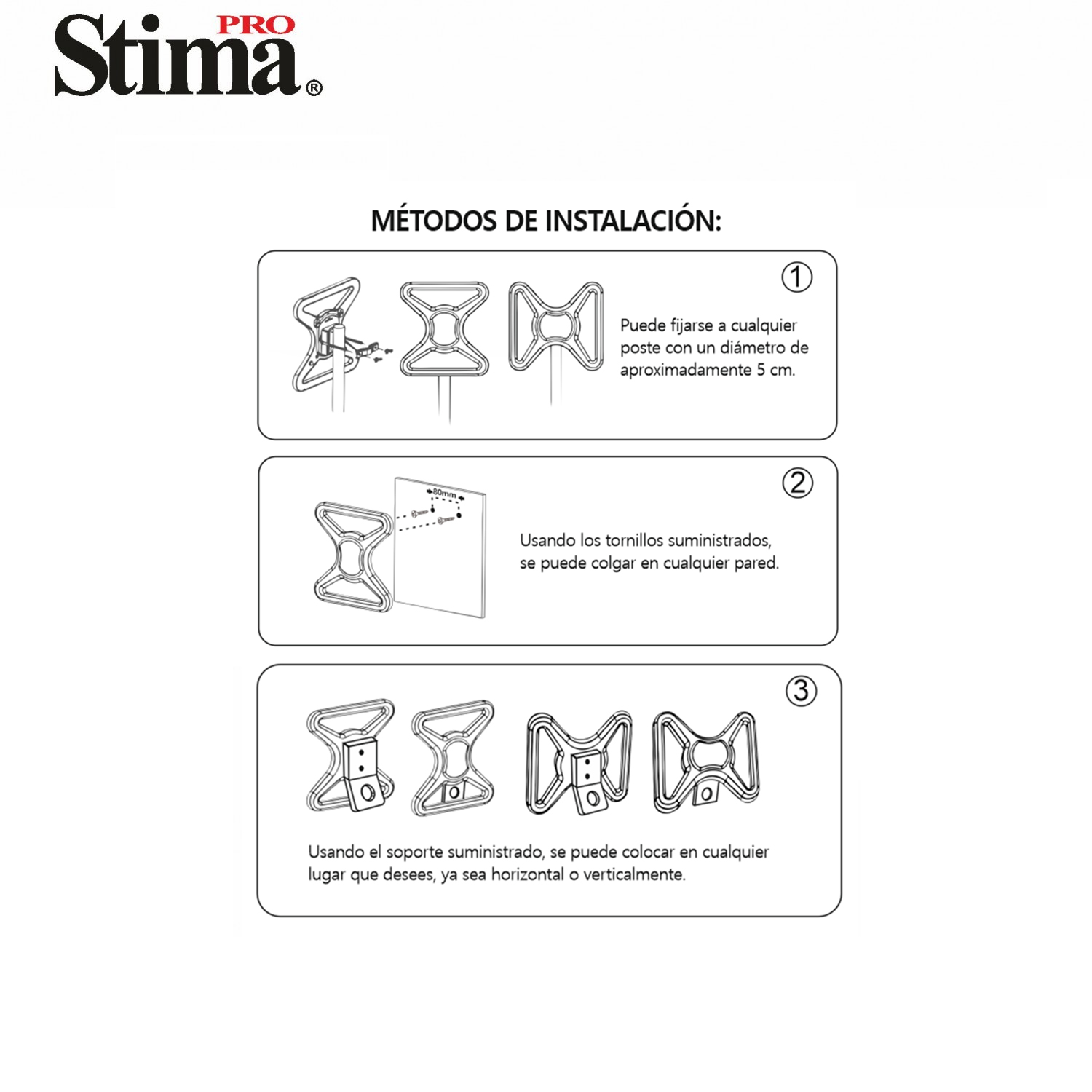 Incluyen: 1 soporte para mesa , 1 accesorio para exterior , 2 tornillos para paled , 1 manual de usuario.