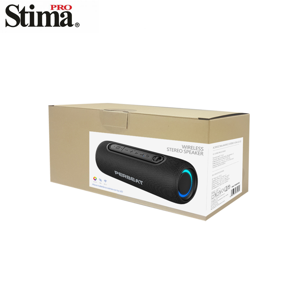 Versión de BT: V5.3 Tamaño de los altavoces: 2 pulgadas x 2 Potencia RMS: 3.5 Wx2=7W, 4Ω Potencia pico:7 W x 2 = 14 W, 4Ω Capacidad de la batería: 3.7 V 1500 mAh Tamaño:240x92x92mm